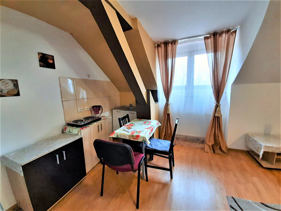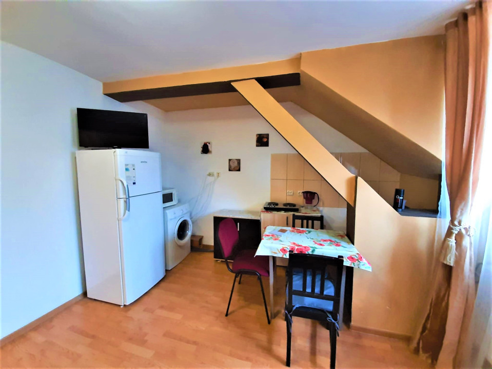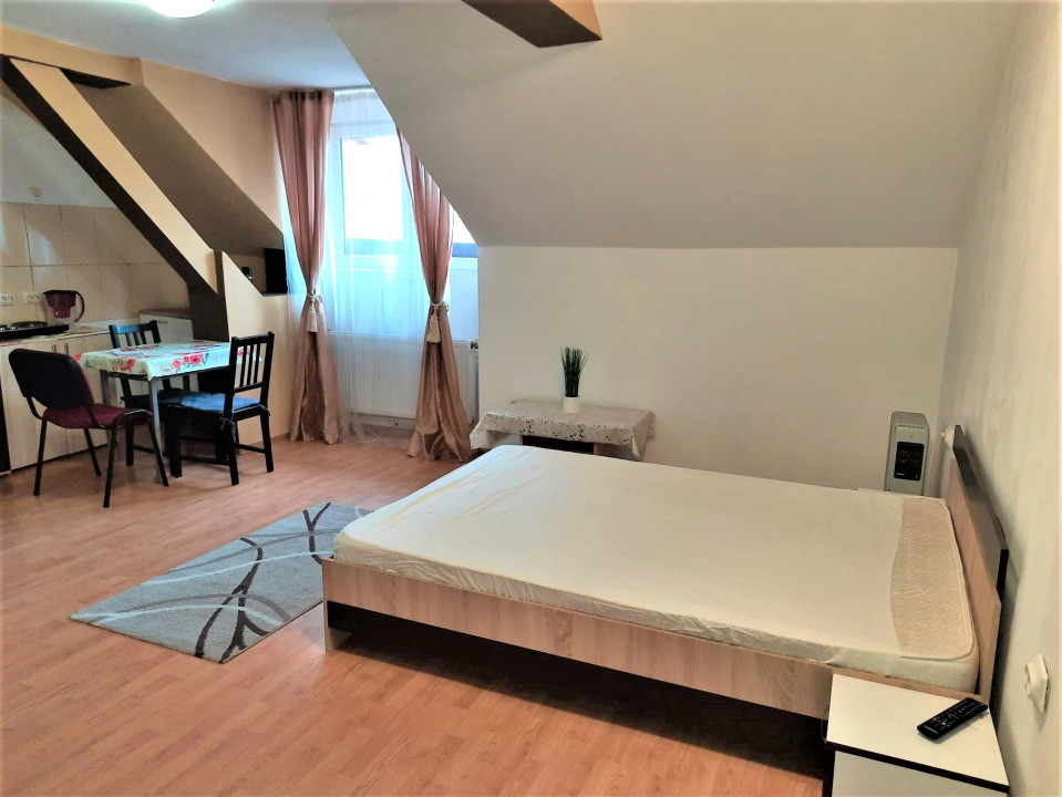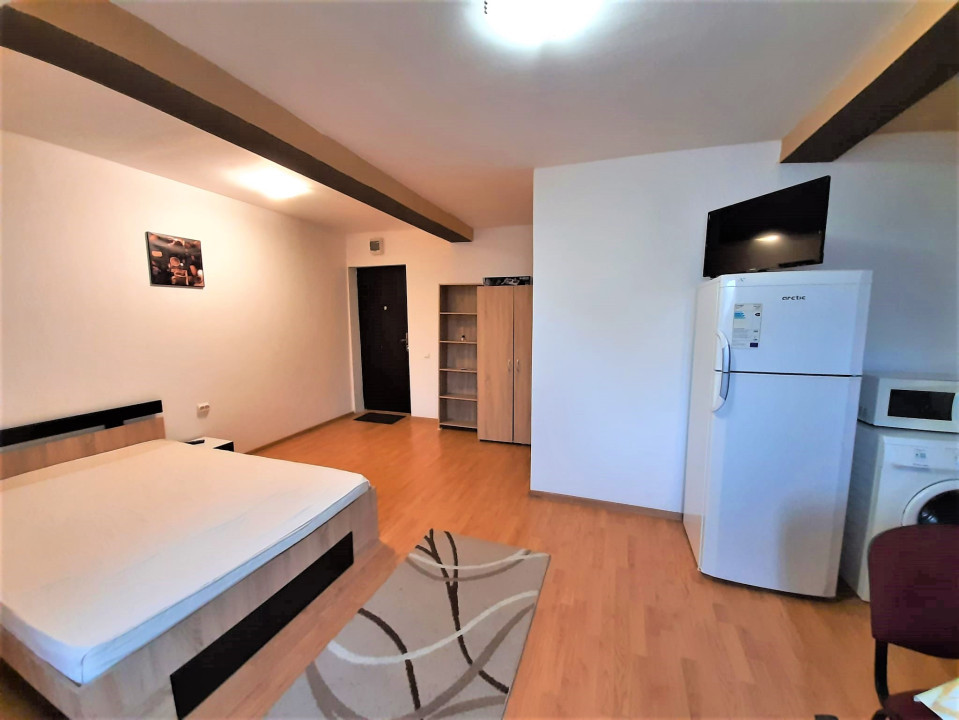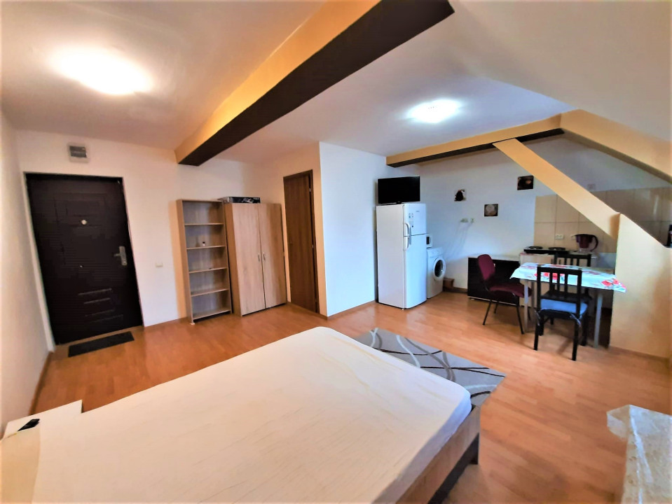 Garsoniera este foarte curata si linistita, mobilata si utilata, dotata cu geam termopan si parchet laminat, totul de buna calitate. Garsoniera dispune de pat matrimonial, masa cu scaune, televizor LED, internet wi-fi, bucataria este utilata cu plita electrica, frigider, iar baia este dotata cu cabina de dus.