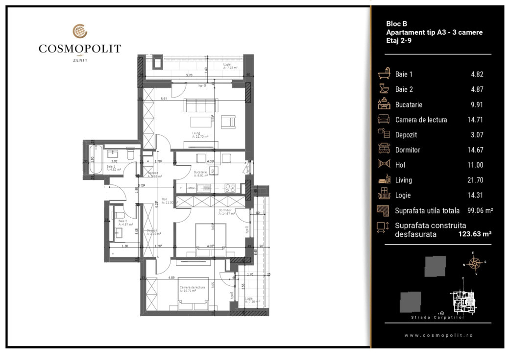 Suprafață totală: 99,06 mp